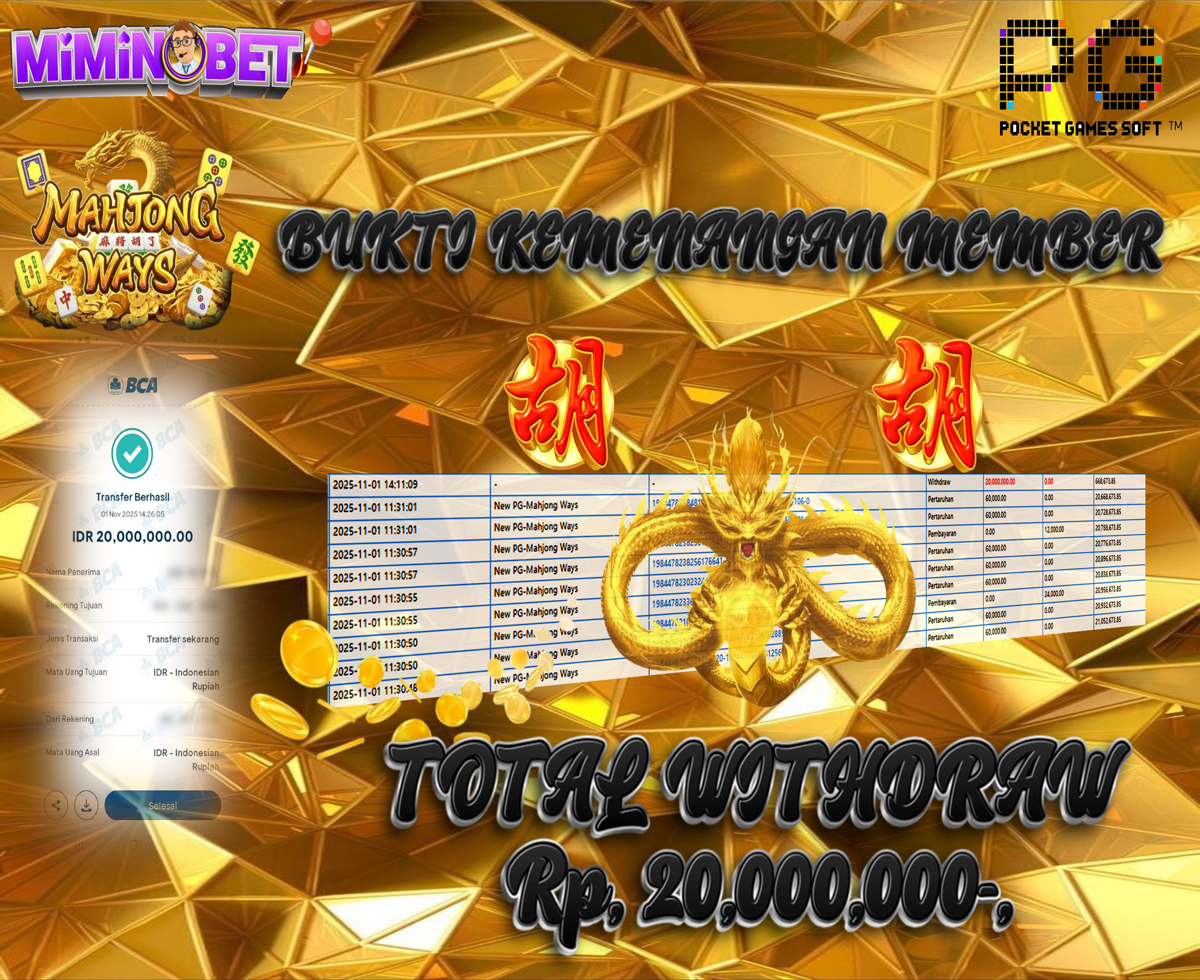 Selamat Kepada User ID : ju*****jy yang berhasil mendapatkan Kemenangan besar di SLOTGAME ( New PG-Mahjong Ways ) Dengan total kemenangan yang berhasil di peroleh yaitu : Rp 20,000,000,- Bukti transfer kemenangan yang kami posting merupakan bukti yang VALID dan SAH karena di dapatkan langsung dari bukti tanda transaksi dari bank yang di tuju / bersangkutan. Kemenangan telah di proseskan setelah melakukan pengisian ( form / formulir ) withdraw. Sebelumnya kami mengucapkan selamat dan berterima kasih kepada Pemenang, karena telah mempercayai situs MIMINBET sebagai BANDAR terpercaya yang sudah membayarkan semua kemenangan member tanpa sisa hingga lunas. Jadi tunggu apa lagi bosku?! Dimana lagi anda bisa jumpai bandar slot dan togel online terbaik dan amanah seperti MIMINBET ?! Bandar yang membayar kemenangan berapa pun tanpa basa basi dan langsung sat set kelar, sat set selesai ^^ Segera bergabung dengan kami MIMINBET, yang dimana ini adalah situs TERBESAR dan TERPERCAYA , Salam JP dan Salam MIMINBET ^^