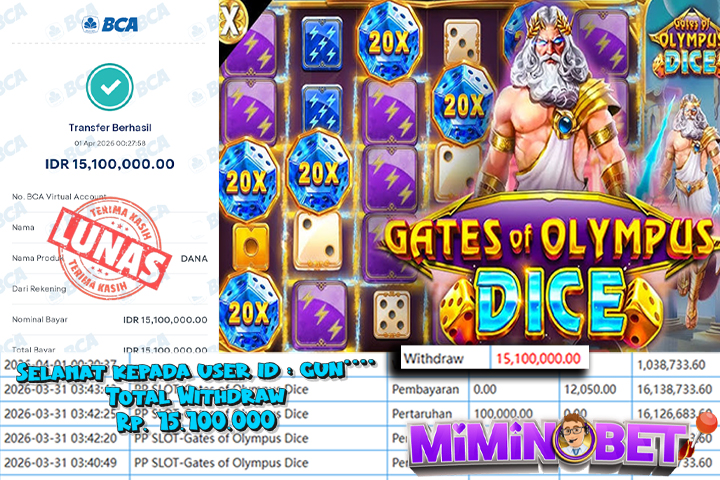 Selamat Kepada User ID : IU*** yang berhasil mendapatkan Kemenangan besar di Pragmatic Play ( Gates Of Olympus 1000 ) Dengan total kemenangan yang berhasil di peroleh yaitu : Rp 14,268,000,- Bukti transfer kemenangan yang kami posting merupakan bukti yang VALID dan SAH karena di dapatkan langsung dari bukti tanda transaksi dari bank yang di tuju / bersangkutan. Kemenangan telah di proseskan setelah melakukan pengisian ( form / formulir ) withdraw. Sebelumnya kami mengucapkan selamat dan berterima kasih kepada Pemenang, karena telah mempercayai situs MIMINBET sebagai BANDAR terpercaya yang sudah membayarkan semua kemenangan member tanpa sisa hingga lunas. Jadi tunggu apa lagi bosku?! Dimana lagi anda bisa jumpai bandar slot dan togel online terbaik dan amanah seperti MIMINBET ?! Bandar yang membayar kemenangan berapa pun tanpa basa basi dan langsung sat set kelar, sat set selesai ^^ Segera bergabung dengan kami MIMINBET, yang dimana ini adalah situs TERBESAR dan TERPERCAYA , Salam JP dan Salam MIMINBET
