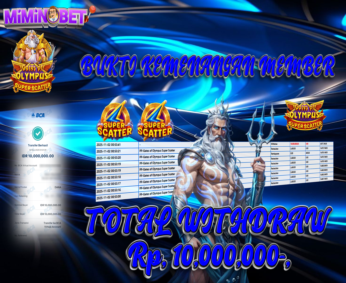 Selamat Kepada User ID : ag*****34 yang berhasil mendapatkan Kemenangan besar di SLOTGAME ( PP-Gates of Olympus Super Scatter ) Dengan total kemenangan yang berhasil di peroleh yaitu : Rp 10,000,000,- Bukti transfer kemenangan yang kami posting merupakan bukti yang VALID dan SAH karena di dapatkan langsung dari bukti tanda transaksi dari bank yang di tuju / bersangkutan. Kemenangan telah di proseskan setelah melakukan pengisian ( form / formulir ) withdraw. Sebelumnya kami mengucapkan selamat dan berterima kasih kepada Pemenang, karena telah mempercayai situs MIMINBET sebagai BANDAR terpercaya yang sudah membayarkan semua kemenangan member tanpa sisa hingga lunas. Jadi tunggu apa lagi bosku?! Dimana lagi anda bisa jumpai bandar slot dan togel online terbaik dan amanah seperti MIMINBET ?! Bandar yang membayar kemenangan berapa pun tanpa basa basi dan langsung sat set kelar, sat set selesai ^^ Segera bergabung dengan kami MIMINBET, yang dimana ini adalah situs TERBESAR dan TERPERCAYA , Salam JP dan Salam MIMINBET ^^