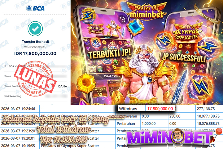 Selamat Kepada User ID : sang***** yang berhasil mendapatkan Kemenangan besar di SLOTGAME ( Gates of Olympus Super Scatter ) Dengan total kemenangan yang berhasil di peroleh yaitu : Rp 17,800,000,- Bukti transfer kemenangan yang kami posting merupakan bukti yang VALID dan SAH karena di dapatkan langsung dari bukti tanda transaksi dari bank yang di tuju / bersangkutan. Kemenangan telah di proseskan setelah melakukan pengisian ( form / formulir ) withdraw. Sebelumnya kami mengucapkan selamat dan berterima kasih kepada Pemenang, karena telah mempercayai situs MIMINBET sebagai BANDAR terpercaya yang sudah membayarkan semua kemenangan member tanpa sisa hingga lunas. Jadi tunggu apa lagi bosku?! Dimana lagi anda bisa jumpai bandar slot dan togel online terbaik dan amanah seperti MIMINBET ?! Bandar yang membayar kemenangan berapa pun tanpa basa basi dan langsung sat set kelar, sat set selesai ^^ Segera bergabung dengan kami MIMINBET, yang dimana ini adalah situs TERBESAR dan TERPERCAYA , Salam JP dan Salam MIMINBET