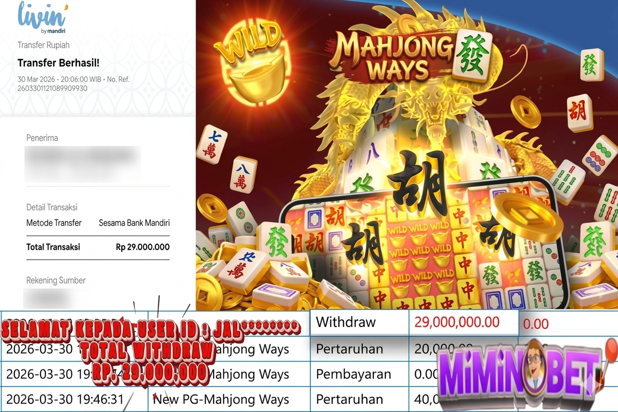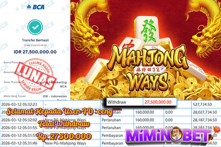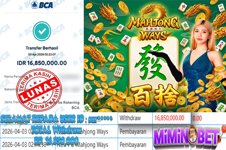 Selamat Kepada User ID : ceng**** yang berhasil mendapatkan Kemenangan besar di SLOTGAME ( New PG-Mahjong Ways ) Dengan total kemenangan yang berhasil di peroleh yaitu : Rp 44,000,000,- Bukti transfer kemenangan yang kami posting merupakan bukti yang VALID dan SAH karena di dapatkan langsung dari bukti tanda transaksi dari bank yang di tuju / bersangkutan. Kemenangan telah di proseskan setelah melakukan pengisian ( form / formulir ) withdraw. Sebelumnya kami mengucapkan selamat dan berterima kasih kepada Pemenang, karena telah mempercayai situs MIMINBET sebagai BANDAR terpercaya yang sudah membayarkan semua kemenangan member tanpa sisa hingga lunas. Jadi tunggu apa lagi bosku?! Dimana lagi anda bisa jumpai bandar slot dan togel online terbaik dan amanah seperti MIMINBET ?! Bandar yang membayar kemenangan berapa pun tanpa basa basi dan langsung sat set kelar, sat set selesai ^^ Segera bergabung dengan kami MIMINBET, yang dimana ini adalah situs TERBESAR dan TERPERCAYA , Salam JP dan Salam MIMINBET