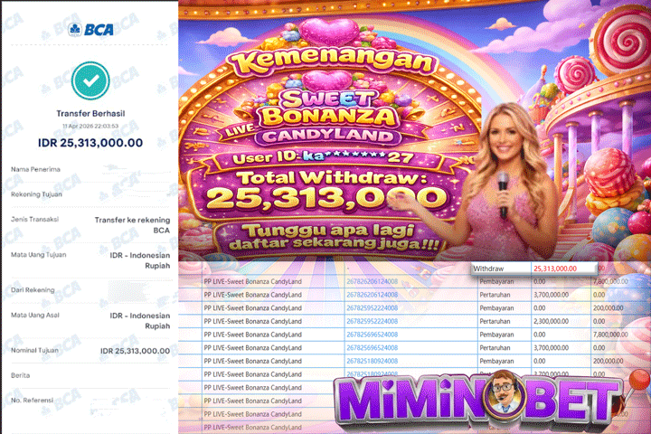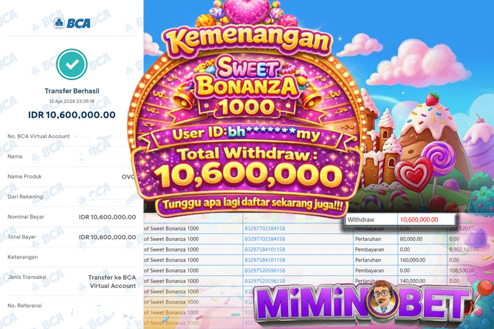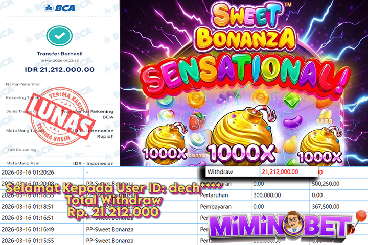 Selamat Kepada User ID : DECK*** yang berhasil mendapatkan Kemenangan besar di SLOTGAME ( PP-Sweet Bonanza ) Dengan total kemenangan yang berhasil di peroleh yaitu : Rp 9,408,000,- Bukti transfer kemenangan yang kami posting merupakan bukti yang VALID dan SAH karena di dapatkan langsung dari bukti tanda transaksi dari bank yang di tuju / bersangkutan. Kemenangan telah di proseskan setelah melakukan pengisian ( form / formulir ) withdraw. Sebelumnya kami mengucapkan selamat dan berterima kasih kepada Pemenang, karena telah mempercayai situs MIMINBET sebagai BANDAR terpercaya yang sudah membayarkan semua kemenangan member tanpa sisa hingga lunas. Jadi tunggu apa lagi bosku?! Dimana lagi anda bisa jumpai bandar slot dan togel online terbaik dan amanah seperti MIMINBET ?! Bandar yang membayar kemenangan berapa pun tanpa basa basi dan langsung sat set kelar, sat set selesai ^^ Segera bergabung dengan kami MIMINBET, yang dimana ini adalah situs TERBESAR dan TERPERCAYA , Salam JP dan Salam MIMINBET