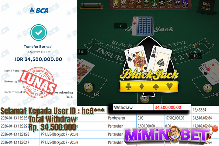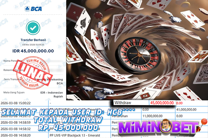 Selamat Kepada User ID : Hc8**** yang berhasil mendapatkan Kemenangan besar di LIVEGAME ( VIP Blackjack13 - Emerald ) Dengan total kemenangan yang berhasil di peroleh yaitu : Rp 45,000,000,- Bukti transfer kemenangan yang kami posting merupakan bukti yang VALID dan SAH karena di dapatkan langsung dari bukti tanda transaksi dari bank yang di tuju / bersangkutan. Kemenangan telah di proseskan setelah melakukan pengisian ( form / formulir ) withdraw. Sebelumnya kami mengucapkan selamat dan berterima kasih kepada Pemenang, karena telah mempercayai situs MIMINBET sebagai BANDAR terpercaya yang sudah membayarkan semua kemenangan member tanpa sisa hingga lunas. Jadi tunggu apa lagi bosku?! Dimana lagi anda bisa jumpai bandar slot dan togel online terbaik dan amanah seperti MIMINBET ?! Bandar yang membayar kemenangan berapa pun tanpa basa basi dan langsung sat set kelar, sat set selesai ^^ Segera bergabung dengan kami MIMINBET, yang dimana ini adalah situs TERBESAR dan TERPERCAYA , Salam JP dan Salam MIMINBET