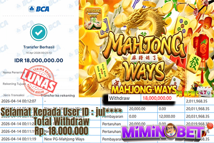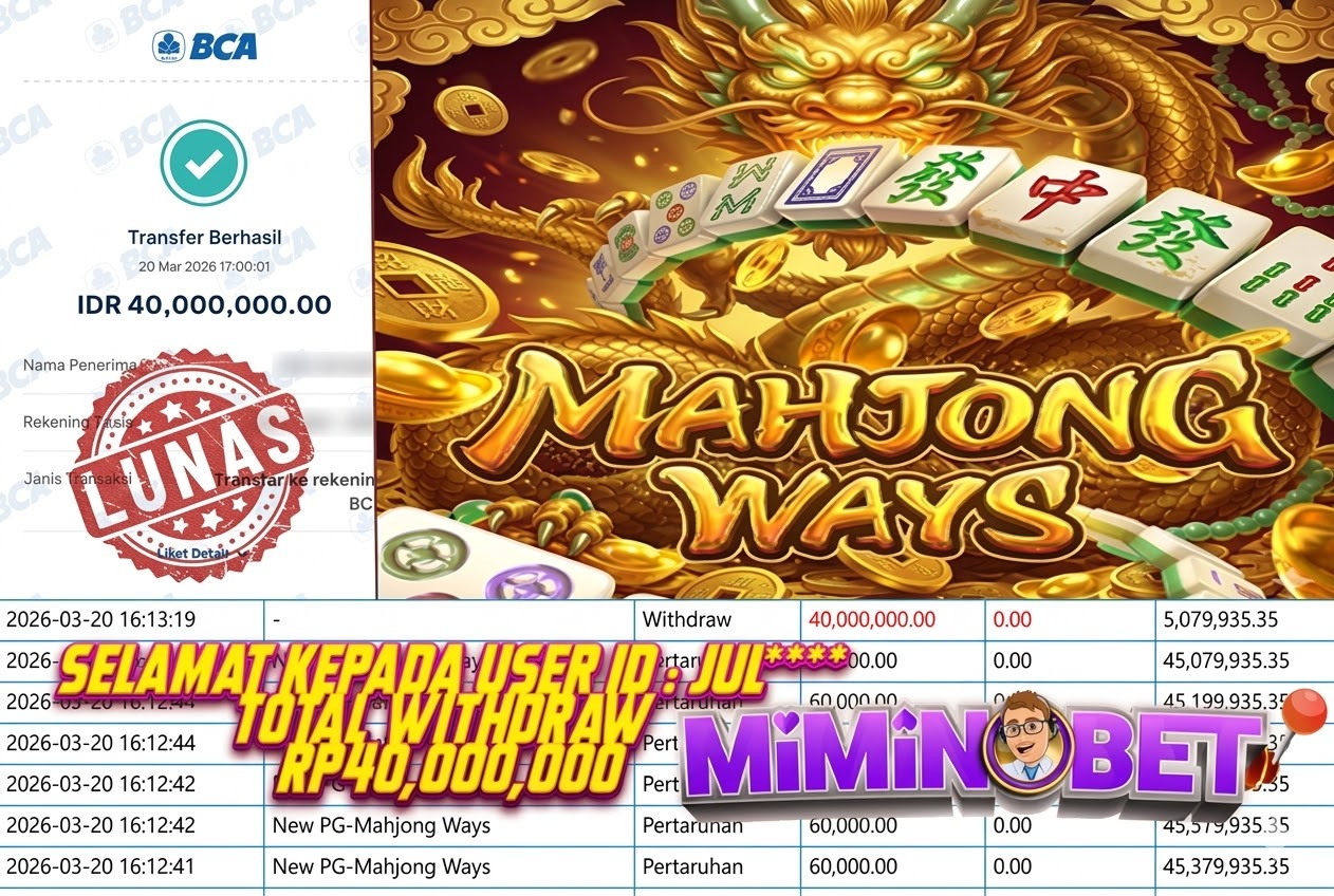 Selamat Kepada User ID : jul**** yang berhasil mendapatkan Kemenangan besar di SLOTGAME ( New PG-Mahjong Ways ) Dengan total kemenangan yang berhasil di peroleh yaitu : Rp 40,000,000,- Bukti transfer kemenangan yang kami posting merupakan bukti yang VALID dan SAH karena di dapatkan langsung dari bukti tanda transaksi dari bank yang di tuju / bersangkutan. Kemenangan telah di proseskan setelah melakukan pengisian ( form / formulir ) withdraw. Sebelumnya kami mengucapkan selamat dan berterima kasih kepada Pemenang, karena telah mempercayai situs MIMINBET sebagai BANDAR terpercaya yang sudah membayarkan semua kemenangan member tanpa sisa hingga lunas. Jadi tunggu apa lagi bosku?! Dimana lagi anda bisa jumpai bandar slot dan togel online terbaik dan amanah seperti MIMINBET ?! Bandar yang membayar kemenangan berapa pun tanpa basa basi dan langsung sat set kelar, sat set selesai ^^ Segera bergabung dengan kami MIMINBET, yang dimana ini adalah situs TERBESAR dan TERPERCAYA , Salam JP dan Salam MIMINBET