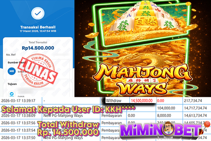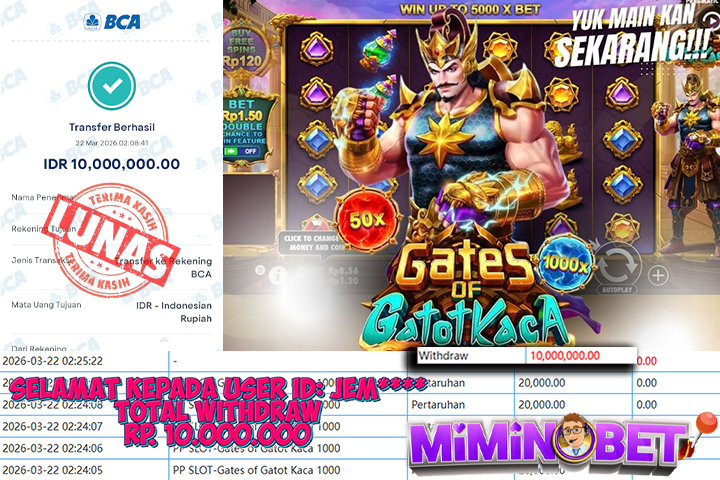 Selamat Kepada User ID : Bor*** yang berhasil mendapatkan Kemenangan besar di Pragmatic Play ( Gates Of Gatot Kaca 1000 ) Dengan total kemenangan yang berhasil di peroleh yaitu : Rp 14,000,000,- Bukti transfer kemenangan yang kami posting merupakan bukti yang VALID dan SAH karena di dapatkan langsung dari bukti tanda transaksi dari bank yang di tuju / bersangkutan. Kemenangan telah di proseskan setelah melakukan pengisian ( form / formulir ) withdraw. Sebelumnya kami mengucapkan selamat dan berterima kasih kepada Pemenang, karena telah mempercayai situs MIMINBET sebagai BANDAR terpercaya yang sudah membayarkan semua kemenangan member tanpa sisa hingga lunas. Jadi tunggu apa lagi bosku?! Dimana lagi anda bisa jumpai bandar slot dan togel online terbaik dan amanah seperti MIMINBET ?! Bandar yang membayar kemenangan berapa pun tanpa basa basi dan langsung sat set kelar, sat set selesai ^^ Segera bergabung dengan kami MIMINBET, yang dimana ini adalah situs TERBESAR dan TERPERCAYA , Salam JP dan Salam MIMINBET