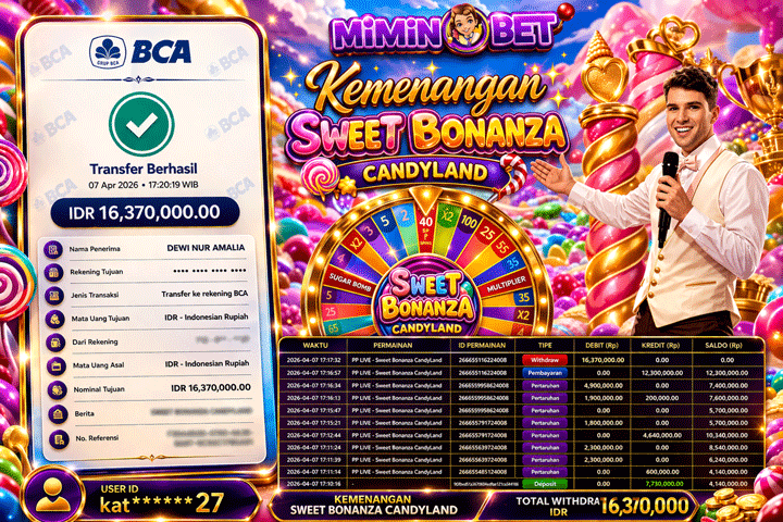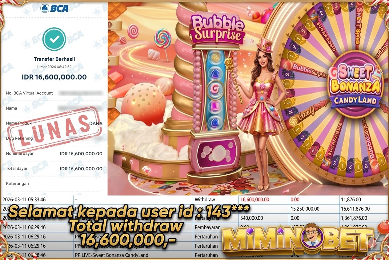 Selamat Kepada User ID : 143*** yang berhasil mendapatkan Kemenangan besar di LIVEGAME ( Sweet Bonanza Candy Land ) Dengan total kemenangan yang berhasil di peroleh yaitu : Rp 16,600,000,- Bukti transfer kemenangan yang kami posting merupakan bukti yang VALID dan SAH karena di dapatkan langsung dari bukti tanda transaksi dari bank yang di tuju / bersangkutan. Kemenangan telah di proseskan setelah melakukan pengisian ( form / formulir ) withdraw. Sebelumnya kami mengucapkan selamat dan berterima kasih kepada Pemenang, karena telah mempercayai situs MIMINBET sebagai BANDAR terpercaya yang sudah membayarkan semua kemenangan member tanpa sisa hingga lunas. Jadi tunggu apa lagi bosku?! Dimana lagi anda bisa jumpai bandar slot dan togel online terbaik dan amanah seperti MIMINBET ?! Bandar yang membayar kemenangan berapa pun tanpa basa basi dan langsung sat set kelar, sat set selesai ^^ Segera bergabung dengan kami MIMINBET, yang dimana ini adalah situs TERBESAR dan TERPERCAYA , Salam JP dan Salam MIMINBET