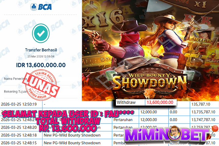 Selamat Kepada User ID : XTN**** yang berhasil mendapatkan Kemenangan besar di PG Soft ( Wild Bounty Showdown ) Dengan total kemenangan yang berhasil di peroleh yaitu : Rp 12,600,000,- Bukti transfer kemenangan yang kami posting merupakan bukti yang VALID dan SAH karena di dapatkan langsung dari bukti tanda transaksi dari bank yang di tuju / bersangkutan. Kemenangan telah di proseskan setelah melakukan pengisian ( form / formulir ) withdraw. Sebelumnya kami mengucapkan selamat dan berterima kasih kepada Pemenang, karena telah mempercayai situs MIMINBET sebagai BANDAR terpercaya yang sudah membayarkan semua kemenangan member tanpa sisa hingga lunas. Jadi tunggu apa lagi bosku?! Dimana lagi anda bisa jumpai bandar slot dan togel online terbaik dan amanah seperti MIMINBET ?! Bandar yang membayar kemenangan berapa pun tanpa basa basi dan langsung sat set kelar, sat set selesai ^^ Segera bergabung dengan kami MIMINBET, yang dimana ini adalah situs TERBESAR dan TERPERCAYA , Salam JP dan Salam MIMINBET