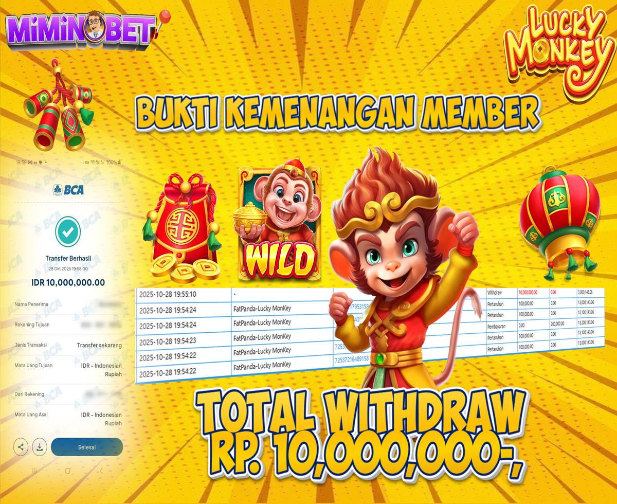 Selamat Kepada User ID : To*****00 yang berhasil mendapatkan Kemenangan besar di SLOTGAME ( FatPanda-Lucky MonKey ) Dengan total kemenangan yang berhasil di peroleh yaitu : Rp 10,000,000,- Bukti transfer kemenangan yang kami posting merupakan bukti yang VALID dan SAH karena di dapatkan langsung dari bukti tanda transaksi dari bank yang di tuju / bersangkutan. Kemenangan telah di proseskan setelah melakukan pengisian ( form / formulir ) withdraw. Sebelumnya kami mengucapkan selamat dan berterima kasih kepada Pemenang, karena telah mempercayai situs MIMINBET sebagai BANDAR terpercaya yang sudah membayarkan semua kemenangan member tanpa sisa hingga lunas. Jadi tunggu apa lagi bosku?! Dimana lagi anda bisa jumpai bandar slot dan togel online terbaik dan amanah seperti MIMINBET ?! Bandar yang membayar kemenangan berapa pun tanpa basa basi dan langsung sat set kelar, sat set selesai ^^ Segera bergabung dengan kami MIMINBET, yang dimana ini adalah situs TERBESAR dan TERPERCAYA , Salam JP dan Salam MIMINBET ^^