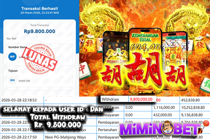 Selamat Kepada User ID : Gu******9 yang berhasil mendapatkan Kemenangan besar di LIVEGAME ( PP LIVE-Big Bass Crash ) Dengan total kemenangan yang berhasil di peroleh yaitu : Rp 10,000,000,- Bukti transfer kemenangan yang kami posting merupakan bukti yang VALID dan SAH karena di dapatkan langsung dari bukti tanda transaksi dari bank yang di tuju / bersangkutan. Kemenangan telah di proseskan setelah melakukan pengisian ( form / formulir ) withdraw. Sebelumnya kami mengucapkan selamat dan berterima kasih kepada Pemenang, karena telah mempercayai situs MIMINBET sebagai BANDAR terpercaya yang sudah membayarkan semua kemenangan member tanpa sisa hingga lunas. Jadi tunggu apa lagi bosku?! Dimana lagi anda bisa jumpai bandar slot dan togel online terbaik dan amanah seperti MIMINBET ?! Bandar yang membayar kemenangan berapa pun tanpa basa basi dan langsung sat set kelar, sat set selesai ^^ Segera bergabung dengan kami MIMINBET, yang dimana ini adalah situs TERBESAR dan TERPERCAYA , Salam JP dan Salam MIMINBET