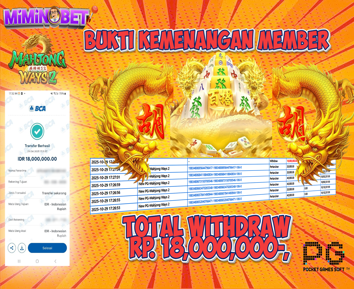 Selamat Kepada User ID : Gr*****rs yang berhasil mendapatkan Kemenangan besar di SLOTGAME ( New PG-Mahjong Ways 2 ) Dengan total kemenangan yang berhasil di peroleh yaitu : Rp 18,000,000,- Bukti transfer kemenangan yang kami posting merupakan bukti yang VALID dan SAH karena di dapatkan langsung dari bukti tanda transaksi dari bank yang di tuju / bersangkutan. Kemenangan telah di proseskan setelah melakukan pengisian ( form / formulir ) withdraw. Sebelumnya kami mengucapkan selamat dan berterima kasih kepada Pemenang, karena telah mempercayai situs MIMINBET sebagai BANDAR terpercaya yang sudah membayarkan semua kemenangan member tanpa sisa hingga lunas. Jadi tunggu apa lagi bosku?! Dimana lagi anda bisa jumpai bandar slot dan togel online terbaik dan amanah seperti MIMINBET ?! Bandar yang membayar kemenangan berapa pun tanpa basa basi dan langsung sat set kelar, sat set selesai ^^ Segera bergabung dengan kami MIMINBET, yang dimana ini adalah situs TERBESAR dan TERPERCAYA , Salam JP dan Salam MIMINBET ^^