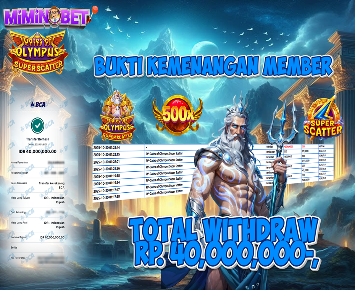 Selamat Kepada User ID : je*****04 yang berhasil mendapatkan Kemenangan besar di SLOTGAME ( PP-Gates of Olympus Super Scatter ) Dengan total kemenangan yang berhasil di peroleh yaitu : Rp 40,000,000,- Bukti transfer kemenangan yang kami posting merupakan bukti yang VALID dan SAH karena di dapatkan langsung dari bukti tanda transaksi dari bank yang di tuju / bersangkutan. Kemenangan telah di proseskan setelah melakukan pengisian ( form / formulir ) withdraw. Sebelumnya kami mengucapkan selamat dan berterima kasih kepada Pemenang, karena telah mempercayai situs MIMINBET sebagai BANDAR terpercaya yang sudah membayarkan semua kemenangan member tanpa sisa hingga lunas. Jadi tunggu apa lagi bosku?! Dimana lagi anda bisa jumpai bandar slot dan togel online terbaik dan amanah seperti MIMINBET ?! Bandar yang membayar kemenangan berapa pun tanpa basa basi dan langsung sat set kelar, sat set selesai ^^ Segera bergabung dengan kami MIMINBET, yang dimana ini adalah situs TERBESAR dan TERPERCAYA , Salam JP dan Salam MIMINBET ^^
