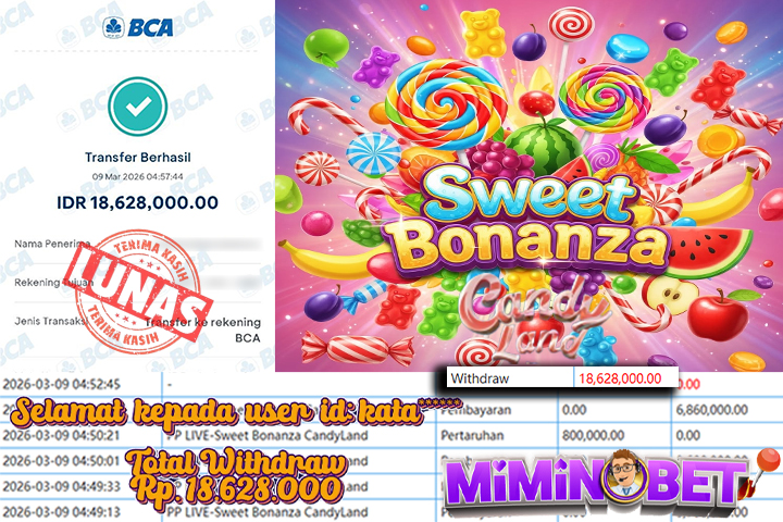 Selamat Kepada User ID : kata***** yang berhasil mendapatkan Kemenangan besar di LIVEGAME ( Sweet Bonanza Candy Land ) Dengan total kemenangan yang berhasil di peroleh yaitu : Rp 18,628,000,- Bukti transfer kemenangan yang kami posting merupakan bukti yang VALID dan SAH karena di dapatkan langsung dari bukti tanda transaksi dari bank yang di tuju / bersangkutan. Kemenangan telah di proseskan setelah melakukan pengisian ( form / formulir ) withdraw. Sebelumnya kami mengucapkan selamat dan berterima kasih kepada Pemenang, karena telah mempercayai situs MIMINBET sebagai BANDAR terpercaya yang sudah membayarkan semua kemenangan member tanpa sisa hingga lunas. Jadi tunggu apa lagi bosku?! Dimana lagi anda bisa jumpai bandar slot dan togel online terbaik dan amanah seperti MIMINBET ?! Bandar yang membayar kemenangan berapa pun tanpa basa basi dan langsung sat set kelar, sat set selesai ^^ Segera bergabung dengan kami MIMINBET, yang dimana ini adalah situs TERBESAR dan TERPERCAYA , Salam JP dan Salam MIMINBET