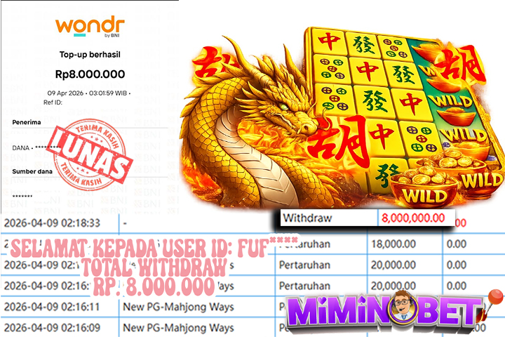 Selamat Kepada User ID : PATS**** yang berhasil mendapatkan Kemenangan besar di PG Soft ( Mafia Mayhem ) Dengan total kemenangan yang berhasil di peroleh yaitu : Rp 8,100,000,- Bukti transfer kemenangan yang kami posting merupakan bukti yang VALID dan SAH karena di dapatkan langsung dari bukti tanda transaksi dari bank yang di tuju / bersangkutan. Kemenangan telah di proseskan setelah melakukan pengisian ( form / formulir ) withdraw. Sebelumnya kami mengucapkan selamat dan berterima kasih kepada Pemenang, karena telah mempercayai situs MIMINBET sebagai BANDAR terpercaya yang sudah membayarkan semua kemenangan member tanpa sisa hingga lunas. Jadi tunggu apa lagi bosku?! Dimana lagi anda bisa jumpai bandar slot dan togel online terbaik dan amanah seperti MIMINBET ?! Bandar yang membayar kemenangan berapa pun tanpa basa basi dan langsung sat set kelar, sat set selesai ^^ Segera bergabung dengan kami MIMINBET, yang dimana ini adalah situs TERBESAR dan TERPERCAYA , Salam JP dan Salam MIMINBET