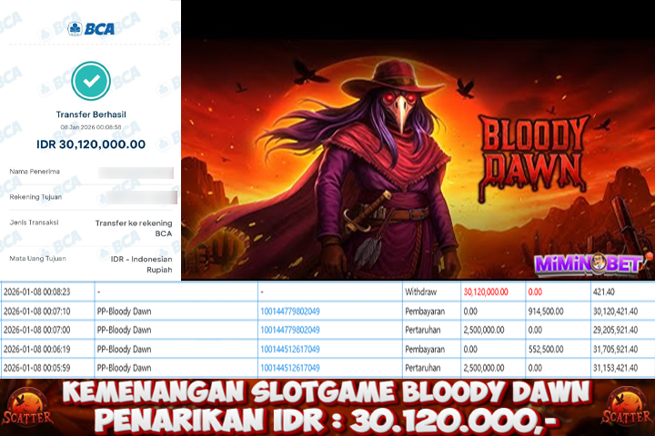 Selamat Kepada User ID : Kan******1 yang berhasil mendapatkan Kemenangan besar di SLOTGAME ( PP - Bloody Dawn ) Dengan total kemenangan yang berhasil di peroleh yaitu : Rp 30,120,000,- Bukti transfer kemenangan yang kami posting merupakan bukti yang VALID dan SAH karena di dapatkan langsung dari bukti tanda transaksi dari bank yang di tuju / bersangkutan. Kemenangan telah di proseskan setelah melakukan pengisian ( form / formulir ) withdraw. Sebelumnya kami mengucapkan selamat dan berterima kasih kepada Pemenang, karena telah mempercayai situs MIMINBET sebagai BANDAR terpercaya yang sudah membayarkan semua kemenangan member tanpa sisa hingga lunas. Jadi tunggu apa lagi bosku?! Dimana lagi anda bisa jumpai bandar slot dan togel online terbaik dan amanah seperti MIMINBET ?! Bandar yang membayar kemenangan berapa pun tanpa basa basi dan langsung sat set kelar, sat set selesai ^^ Segera bergabung dengan kami MIMINBET, yang dimana ini adalah situs TERBESAR dan TERPERCAYA , Salam JP dan Salam MIMINBET