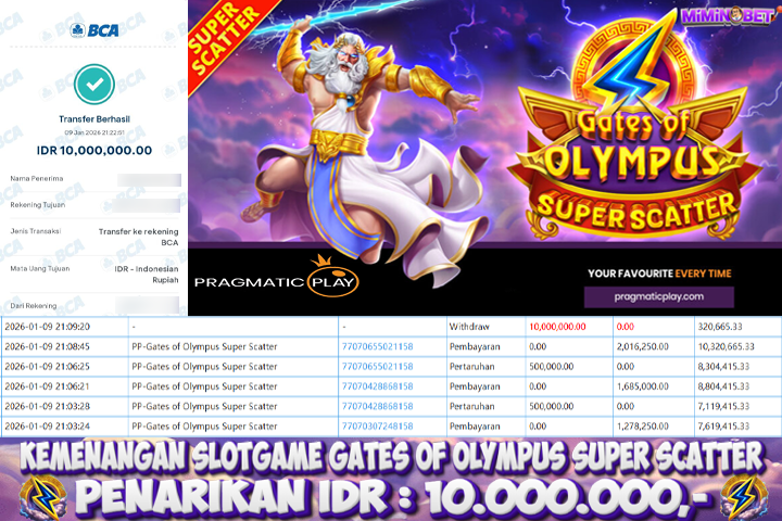 Selamat Kepada User ID : mam********6 yang berhasil mendapatkan Kemenangan besar di SLOTGAME ( PP-Gates of Olympus Super Scatter ) Dengan total kemenangan yang berhasil di peroleh yaitu : Rp 10,000,000,- Bukti transfer kemenangan yang kami posting merupakan bukti yang VALID dan SAH karena di dapatkan langsung dari bukti tanda transaksi dari bank yang di tuju / bersangkutan. Kemenangan telah di proseskan setelah melakukan pengisian ( form / formulir ) withdraw. Sebelumnya kami mengucapkan selamat dan berterima kasih kepada Pemenang, karena telah mempercayai situs MIMINBET sebagai BANDAR terpercaya yang sudah membayarkan semua kemenangan member tanpa sisa hingga lunas. Jadi tunggu apa lagi bosku?! Dimana lagi anda bisa jumpai bandar slot dan togel online terbaik dan amanah seperti MIMINBET ?! Bandar yang membayar kemenangan berapa pun tanpa basa basi dan langsung sat set kelar, sat set selesai ^^ Segera bergabung dengan kami MIMINBET, yang dimana ini adalah situs TERBESAR dan TERPERCAYA , Salam JP dan Salam MIMINBET