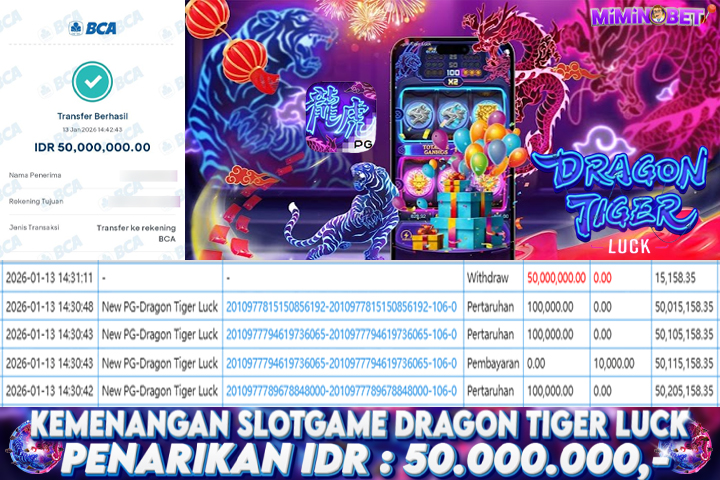 Selamat Kepada User ID : Ju****y yang berhasil mendapatkan Kemenangan besar di SLOTGAME ( NEW PG-Dragon Tiger Luck ) Dengan total kemenangan yang berhasil di peroleh yaitu : Rp 50,000,000,- Bukti transfer kemenangan yang kami posting merupakan bukti yang VALID dan SAH karena di dapatkan langsung dari bukti tanda transaksi dari bank yang di tuju / bersangkutan. Kemenangan telah di proseskan setelah melakukan pengisian ( form / formulir ) withdraw. Sebelumnya kami mengucapkan selamat dan berterima kasih kepada Pemenang, karena telah mempercayai situs MIMINBET sebagai BANDAR terpercaya yang sudah membayarkan semua kemenangan member tanpa sisa hingga lunas. Jadi tunggu apa lagi bosku?! Dimana lagi anda bisa jumpai bandar slot dan togel online terbaik dan amanah seperti MIMINBET ?! Bandar yang membayar kemenangan berapa pun tanpa basa basi dan langsung sat set kelar, sat set selesai ^^ Segera bergabung dengan kami MIMINBET, yang dimana ini adalah situs TERBESAR dan TERPERCAYA , Salam JP dan Salam MIMINBET