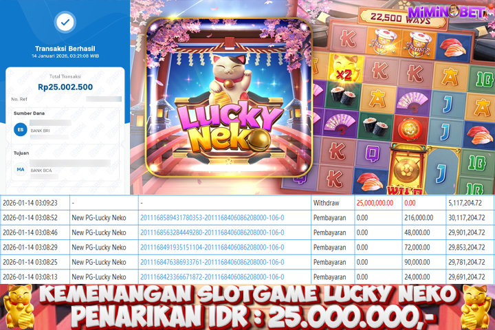 Selamat Kepada User ID : m****1 yang berhasil mendapatkan Kemenangan besar di SLOTGAME ( New PG-Lucky Neko ) Dengan total kemenangan yang berhasil di peroleh yaitu : Rp 25,000,000,- Bukti transfer kemenangan yang kami posting merupakan bukti yang VALID dan SAH karena di dapatkan langsung dari bukti tanda transaksi dari bank yang di tuju / bersangkutan. Kemenangan telah di proseskan setelah melakukan pengisian ( form / formulir ) withdraw. Sebelumnya kami mengucapkan selamat dan berterima kasih kepada Pemenang, karena telah mempercayai situs MIMINBET sebagai BANDAR terpercaya yang sudah membayarkan semua kemenangan member tanpa sisa hingga lunas. Jadi tunggu apa lagi bosku?! Dimana lagi anda bisa jumpai bandar slot dan togel online terbaik dan amanah seperti MIMINBET ?! Bandar yang membayar kemenangan berapa pun tanpa basa basi dan langsung sat set kelar, sat set selesai ^^ Segera bergabung dengan kami MIMINBET, yang dimana ini adalah situs TERBESAR dan TERPERCAYA , Salam JP dan Salam MIMINBET