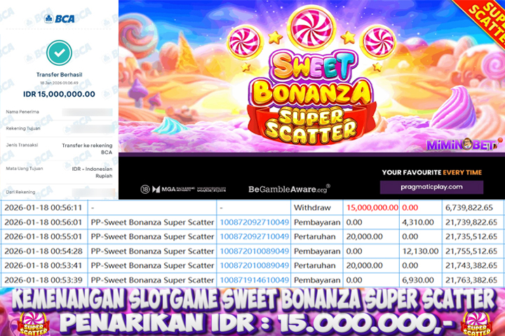 Selamat Kepada User ID : De****u yang berhasil mendapatkan Kemenangan besar di SLOTGAME ( PP-Sweet Bonanza Super Scatter ) Dengan total kemenangan yang berhasil di peroleh yaitu : Rp 15,000,000,- Bukti transfer kemenangan yang kami posting merupakan bukti yang VALID dan SAH karena di dapatkan langsung dari bukti tanda transaksi dari bank yang di tuju / bersangkutan. Kemenangan telah di proseskan setelah melakukan pengisian ( form / formulir ) withdraw. Sebelumnya kami mengucapkan selamat dan berterima kasih kepada Pemenang, karena telah mempercayai situs MIMINBET sebagai BANDAR terpercaya yang sudah membayarkan semua kemenangan member tanpa sisa hingga lunas. Jadi tunggu apa lagi bosku?! Dimana lagi anda bisa jumpai bandar slot dan togel online terbaik dan amanah seperti MIMINBET ?! Bandar yang membayar kemenangan berapa pun tanpa basa basi dan langsung sat set kelar, sat set selesai ^^ Segera bergabung dengan kami MIMINBET, yang dimana ini adalah situs TERBESAR dan TERPERCAYA , Salam JP dan Salam MIMINBET