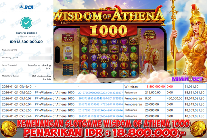 Selamat Kepada User ID : ed****g yang berhasil mendapatkan Kemenangan besar di SLOTGAME ( PP-Wisdom of Athena 1000 ) Dengan total kemenangan yang berhasil di peroleh yaitu : Rp 18,800,000,- Bukti transfer kemenangan yang kami posting merupakan bukti yang VALID dan SAH karena di dapatkan langsung dari bukti tanda transaksi dari bank yang di tuju / bersangkutan. Kemenangan telah di proseskan setelah melakukan pengisian ( form / formulir ) withdraw. Sebelumnya kami mengucapkan selamat dan berterima kasih kepada Pemenang, karena telah mempercayai situs MIMINBET sebagai BANDAR terpercaya yang sudah membayarkan semua kemenangan member tanpa sisa hingga lunas. Jadi tunggu apa lagi bosku?! Dimana lagi anda bisa jumpai bandar slot dan togel online terbaik dan amanah seperti MIMINBET ?! Bandar yang membayar kemenangan berapa pun tanpa basa basi dan langsung sat set kelar, sat set selesai ^^ Segera bergabung dengan kami MIMINBET, yang dimana ini adalah situs TERBESAR dan TERPERCAYA , Salam JP dan Salam MIMINBET