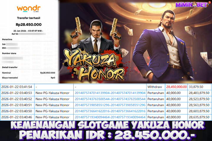 Selamat Kepada User ID : La****o yang berhasil mendapatkan Kemenangan besar di SLOTGAME ( New PG-Yakuza Honor ) Dengan total kemenangan yang berhasil di peroleh yaitu : Rp 28,450,000,- Bukti transfer kemenangan yang kami posting merupakan bukti yang VALID dan SAH karena di dapatkan langsung dari bukti tanda transaksi dari bank yang di tuju / bersangkutan. Kemenangan telah di proseskan setelah melakukan pengisian ( form / formulir ) withdraw. Sebelumnya kami mengucapkan selamat dan berterima kasih kepada Pemenang, karena telah mempercayai situs MIMINBET sebagai BANDAR terpercaya yang sudah membayarkan semua kemenangan member tanpa sisa hingga lunas. Jadi tunggu apa lagi bosku?! Dimana lagi anda bisa jumpai bandar slot dan togel online terbaik dan amanah seperti MIMINBET ?! Bandar yang membayar kemenangan berapa pun tanpa basa basi dan langsung sat set kelar, sat set selesai ^^ Segera bergabung dengan kami MIMINBET, yang dimana ini adalah situs TERBESAR dan TERPERCAYA , Salam JP dan Salam MIMINBET