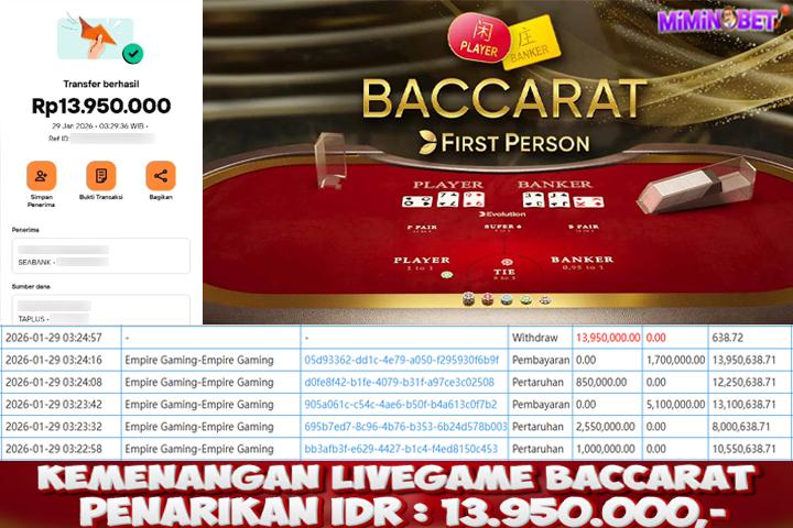 Selamat Kepada User ID : si*****5 yang berhasil mendapatkan Kemenangan besar di LIVEGAME ( Empire Gaming-Live Tiger Baccarat ) Dengan total kemenangan yang berhasil di peroleh yaitu : Rp 13,950,000,- Bukti transfer kemenangan yang kami posting merupakan bukti yang VALID dan SAH karena di dapatkan langsung dari bukti tanda transaksi dari bank yang di tuju / bersangkutan. Kemenangan telah di proseskan setelah melakukan pengisian ( form / formulir ) withdraw. Sebelumnya kami mengucapkan selamat dan berterima kasih kepada Pemenang, karena telah mempercayai situs MIMINBET sebagai BANDAR terpercaya yang sudah membayarkan semua kemenangan member tanpa sisa hingga lunas. Jadi tunggu apa lagi bosku?! Dimana lagi anda bisa jumpai bandar slot dan togel online terbaik dan amanah seperti MIMINBET ?! Bandar yang membayar kemenangan berapa pun tanpa basa basi dan langsung sat set kelar, sat set selesai ^^ Segera bergabung dengan kami MIMINBET, yang dimana ini adalah situs TERBESAR dan TERPERCAYA , Salam JP dan Salam MIMINBET