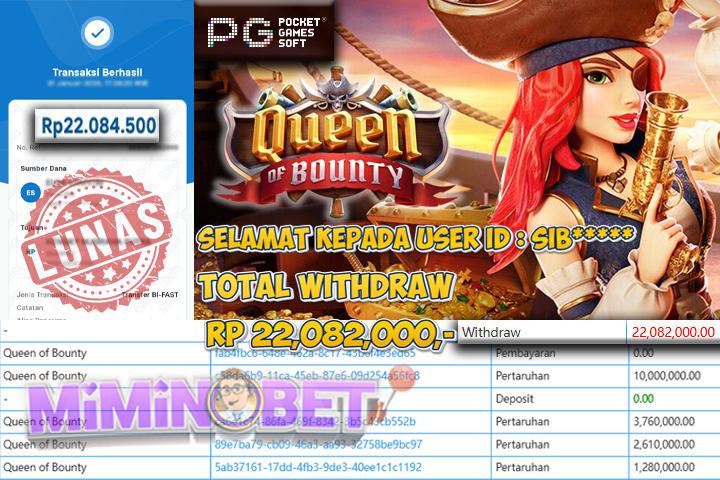 Selamat Kepada User ID : Sib****** yang berhasil mendapatkan Kemenangan besar di SLOTGAME PG Soft ( Queen Of Bounty ) Dengan total kemenangan yang berhasil di peroleh yaitu : Rp 22,082,000,- Bukti transfer kemenangan yang kami posting merupakan bukti yang VALID dan SAH karena di dapatkan langsung dari bukti tanda transaksi dari bank yang di tuju / bersangkutan. Kemenangan telah di proseskan setelah melakukan pengisian ( form / formulir ) withdraw. Sebelumnya kami mengucapkan selamat dan berterima kasih kepada Pemenang, karena telah mempercayai situs MIMINBET sebagai BANDAR terpercaya yang sudah membayarkan semua kemenangan member tanpa sisa hingga lunas. Jadi tunggu apa lagi bosku?! Dimana lagi anda bisa jumpai bandar slot dan togel online terbaik dan amanah seperti MIMINBET ?! Bandar yang membayar kemenangan berapa pun tanpa basa basi dan langsung sat set kelar, sat set selesai ^^ Segera bergabung dengan kami MIMINBET, yang dimana ini adalah situs TERBESAR dan TERPERCAYA , Salam JP dan Salam MIMINBET
