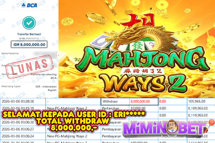 Selamat Kepada User ID : Eri***** yang berhasil mendapatkan Kemenangan besar di SLOTGAME ( New PG-Mahjong Ways 2 ) Dengan total kemenangan yang berhasil di peroleh yaitu : Rp 8,000,000,- Bukti transfer kemenangan yang kami posting merupakan bukti yang VALID dan SAH karena di dapatkan langsung dari bukti tanda transaksi dari bank yang di tuju / bersangkutan. Kemenangan telah di proseskan setelah melakukan pengisian ( form / formulir ) withdraw. Sebelumnya kami mengucapkan selamat dan berterima kasih kepada Pemenang, karena telah mempercayai situs MIMINBET sebagai BANDAR terpercaya yang sudah membayarkan semua kemenangan member tanpa sisa hingga lunas. Jadi tunggu apa lagi bosku?! Dimana lagi anda bisa jumpai bandar slot dan togel online terbaik dan amanah seperti MIMINBET ?! Bandar yang membayar kemenangan berapa pun tanpa basa basi dan langsung sat set kelar, sat set selesai ^^ Segera bergabung dengan kami MIMINBET, yang dimana ini adalah situs TERBESAR dan TERPERCAYA , Salam JP dan Salam MIMINBET