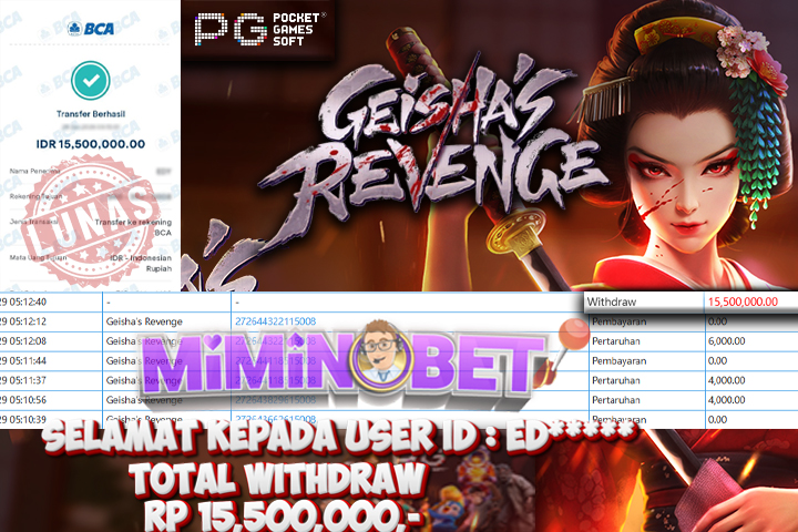 Selamat Kepada User ID : si*****5 yang berhasil mendapatkan Kemenangan besar di PGSoft( Geisha Revenge ) Dengan total kemenangan yang berhasil di peroleh yaitu : Rp 15,500,000,- Bukti transfer kemenangan yang kami posting merupakan bukti yang VALID dan SAH karena di dapatkan langsung dari bukti tanda transaksi dari bank yang di tuju / bersangkutan. Kemenangan telah di proseskan setelah melakukan pengisian ( form / formulir ) withdraw. Sebelumnya kami mengucapkan selamat dan berterima kasih kepada Pemenang, karena telah mempercayai situs MIMINBET sebagai BANDAR terpercaya yang sudah membayarkan semua kemenangan member tanpa sisa hingga lunas. Jadi tunggu apa lagi bosku?! Dimana lagi anda bisa jumpai bandar slot dan togel online terbaik dan amanah seperti MIMINBET ?! Bandar yang membayar kemenangan berapa pun tanpa basa basi dan langsung sat set kelar, sat set selesai ^^ Segera bergabung dengan kami MIMINBET, yang dimana ini adalah situs TERBESAR dan TERPERCAYA , Salam JP dan Salam MIMINBET