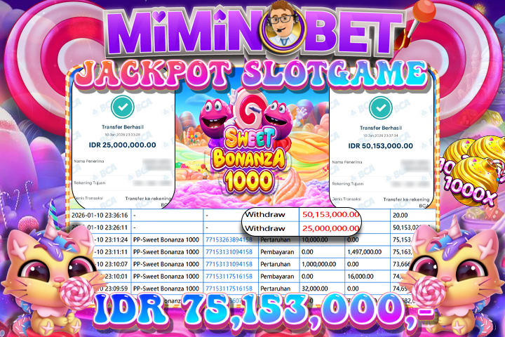 Selamat Kepada User ID : On****3 yang berhasil mendapatkan Kemenangan besar di SLOTGAME ( PP-Sweet Bonanza 1000 ) Dengan total kemenangan yang berhasil di peroleh yaitu : Rp 75,153,000,- Bukti transfer kemenangan yang kami posting merupakan bukti yang VALID dan SAH karena di dapatkan langsung dari bukti tanda transaksi dari bank yang di tuju / bersangkutan. Kemenangan telah di proseskan setelah melakukan pengisian ( form / formulir ) withdraw. Sebelumnya kami mengucapkan selamat dan berterima kasih kepada Pemenang, karena telah mempercayai situs MIMINBET sebagai BANDAR terpercaya yang sudah membayarkan semua kemenangan member tanpa sisa hingga lunas. Jadi tunggu apa lagi bosku?! Dimana lagi anda bisa jumpai bandar slot dan togel online terbaik dan amanah seperti MIMINBET ?! Bandar yang membayar kemenangan berapa pun tanpa basa basi dan langsung sat set kelar, sat set selesai ^^ Segera bergabung dengan kami MIMINBET, yang dimana ini adalah situs TERBESAR dan TERPERCAYA , Salam JP dan Salam MIMINBET