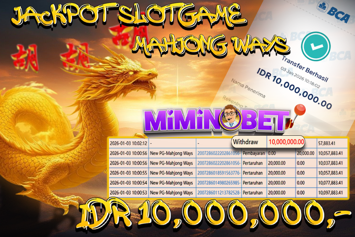 Selamat Kepada User ID : Je******4 yang berhasil mendapatkan Kemenangan besar di SLOTGAME (New PG-Mahjong Ways) Dengan total kemenangan yang berhasil di peroleh yaitu : Rp 10,000,000,- Bukti transfer kemenangan yang kami posting merupakan bukti yang VALID dan SAH karena di dapatkan langsung dari bukti tanda transaksi dari bank yang di tuju / bersangkutan. Kemenangan telah di proseskan setelah melakukan pengisian ( form / formulir ) withdraw. Sebelumnya kami mengucapkan selamat dan berterima kasih kepada Pemenang, karena telah mempercayai situs MIMINBET sebagai BANDAR terpercaya yang sudah membayarkan semua kemenangan member tanpa sisa hingga lunas. Jadi tunggu apa lagi bosku?! Dimana lagi anda bisa jumpai bandar slot dan togel online terbaik dan amanah seperti MIMINBET ?! Bandar yang membayar kemenangan berapa pun tanpa basa basi dan langsung sat set kelar, sat set selesai ^^ Segera bergabung dengan kami MIMINBET, yang dimana ini adalah situs TERBESAR dan TERPERCAYA , Salam JP dan Salam MIMINBET