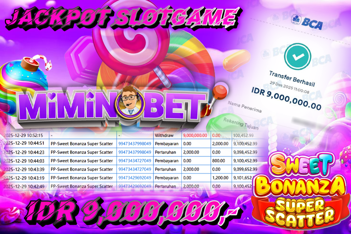 Selamat Kepada User ID : Bo****n yang berhasil mendapatkan Kemenangan besar di SLOTGAME ( PP-Sweet Bonanza Super Scatter ) Dengan total kemenangan yang berhasil di peroleh yaitu : Rp 9,000,000,- Bukti transfer kemenangan yang kami posting merupakan bukti yang VALID dan SAH karena di dapatkan langsung dari bukti tanda transaksi dari bank yang di tuju / bersangkutan. Kemenangan telah di proseskan setelah melakukan pengisian ( form / formulir ) withdraw. Sebelumnya kami mengucapkan selamat dan berterima kasih kepada Pemenang, karena telah mempercayai situs MIMINBET sebagai BANDAR terpercaya yang sudah membayarkan semua kemenangan member tanpa sisa hingga lunas. Jadi tunggu apa lagi bosku?! Dimana lagi anda bisa jumpai bandar slot dan togel online terbaik dan amanah seperti MIMINBET ?! Bandar yang membayar kemenangan berapa pun tanpa basa basi dan langsung sat set kelar, sat set selesai ^^ Segera bergabung dengan kami MIMINBET, yang dimana ini adalah situs TERBESAR dan TERPERCAYA , Salam JP dan Salam MIMINBET