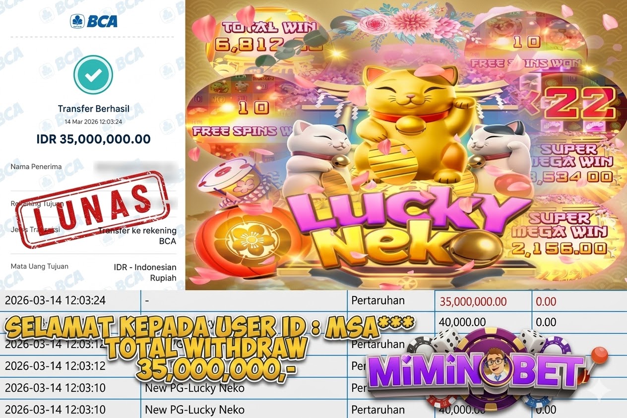Selamat Kepada User ID : IU*** yang berhasil mendapatkan Kemenangan besar di PG Soft ( Lucky Neko ) Dengan total kemenangan yang berhasil di peroleh yaitu : Rp 12,500,000,- Bukti transfer kemenangan yang kami posting merupakan bukti yang VALID dan SAH karena di dapatkan langsung dari bukti tanda transaksi dari bank yang di tuju / bersangkutan. Kemenangan telah di proseskan setelah melakukan pengisian ( form / formulir ) withdraw. Sebelumnya kami mengucapkan selamat dan berterima kasih kepada Pemenang, karena telah mempercayai situs MIMINBET sebagai BANDAR terpercaya yang sudah membayarkan semua kemenangan member tanpa sisa hingga lunas. Jadi tunggu apa lagi bosku?! Dimana lagi anda bisa jumpai bandar slot dan togel online terbaik dan amanah seperti MIMINBET ?! Bandar yang membayar kemenangan berapa pun tanpa basa basi dan langsung sat set kelar, sat set selesai ^^ Segera bergabung dengan kami MIMINBET, yang dimana ini adalah situs TERBESAR dan TERPERCAYA , Salam JP dan Salam MIMINBET