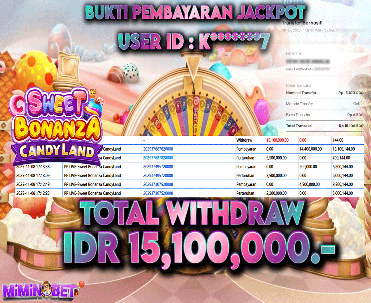 Selamat Kepada User ID : k*******7 yang berhasil mendapatkan Kemenangan besar di LIVEGAMES ( PP-Live Sweet Bonanza CandyLand ) Dengan total kemenangan yang berhasil di peroleh yaitu : Rp 15,100,000,- Bukti transfer kemenangan yang kami posting merupakan bukti yang VALID dan SAH karena di dapatkan langsung dari bukti tanda transaksi dari bank yang di tuju / bersangkutan. Kemenangan telah di proseskan setelah melakukan pengisian ( form / formulir ) withdraw. Sebelumnya kami mengucapkan selamat dan berterima kasih kepada Pemenang, karena telah mempercayai situs MIMINBET sebagai BANDAR terpercaya yang sudah membayarkan semua kemenangan member tanpa sisa hingga lunas. Jadi tunggu apa lagi bosku?! Dimana lagi anda bisa jumpai bandar slot dan togel online terbaik dan amanah seperti MIMINBET ?! Bandar yang membayar kemenangan berapa pun tanpa basa basi dan langsung sat set kelar, sat set selesai ^^ Segera bergabung dengan kami MIMINBET, yang dimana ini adalah situs TERBESAR dan TERPERCAYA , Salam JP dan Salam MIMINBET ^^