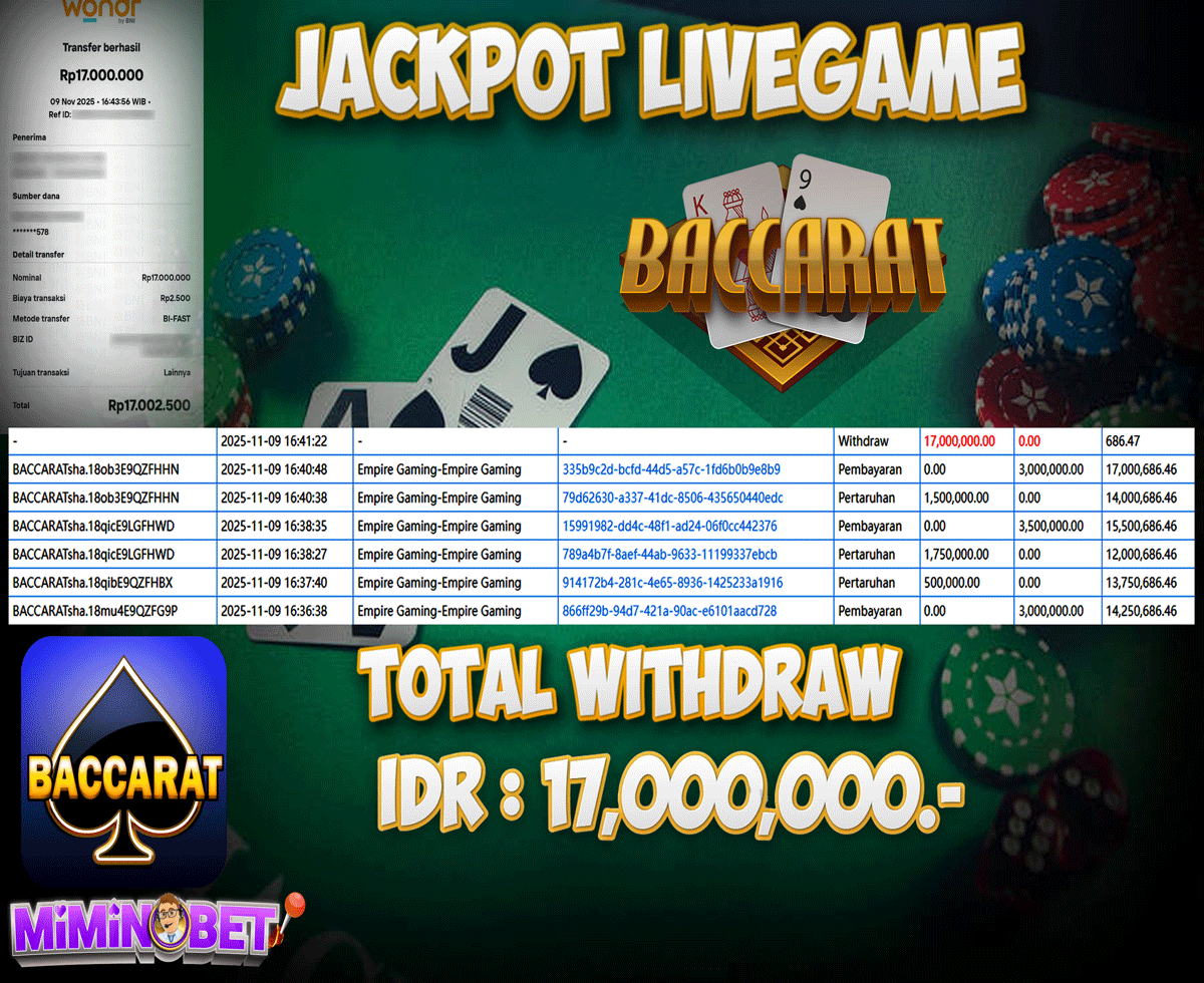 Selamat Kepada User ID : s*******5 yang berhasil mendapatkan Kemenangan besar di LIVEGAMES ( Empire Gaming-Empire Gaming ) Dengan total kemenangan yang berhasil di peroleh yaitu : Rp 17,000,000,- Bukti transfer kemenangan yang kami posting merupakan bukti yang VALID dan SAH karena di dapatkan langsung dari bukti tanda transaksi dari bank yang di tuju / bersangkutan. Kemenangan telah di proseskan setelah melakukan pengisian ( form / formulir ) withdraw. Sebelumnya kami mengucapkan selamat dan berterima kasih kepada Pemenang, karena telah mempercayai situs MIMINBET sebagai BANDAR terpercaya yang sudah membayarkan semua kemenangan member tanpa sisa hingga lunas. Jadi tunggu apa lagi bosku?! Dimana lagi anda bisa jumpai bandar slot dan togel online terbaik dan amanah seperti MIMINBET ?! Bandar yang membayar kemenangan berapa pun tanpa basa basi dan langsung sat set kelar, sat set selesai ^^ Segera bergabung dengan kami MIMINBET, yang dimana ini adalah situs TERBESAR dan TERPERCAYA , Salam JP dan Salam MIMINBET ^^