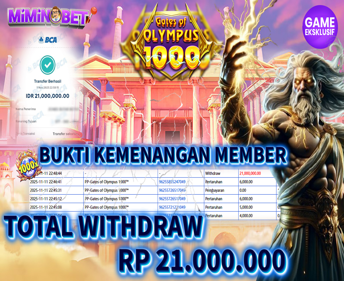 Selamat Kepada User ID : jo****s1 yang berhasil mendapatkan Kemenangan besar di SLOTGAME (PP-Gates of Olympus 1000) Dengan total kemenangan yang berhasil di peroleh yaitu : Rp 21,000,000,- Bukti transfer kemenangan yang kami posting merupakan bukti yang VALID dan SAH karena di dapatkan langsung dari bukti tanda transaksi dari bank yang di tuju / bersangkutan. Kemenangan telah di proseskan setelah melakukan pengisian ( form / formulir ) withdraw. Sebelumnya kami mengucapkan selamat dan berterima kasih kepada Pemenang, karena telah mempercayai situs MIMINBET sebagai BANDAR terpercaya yang sudah membayarkan semua kemenangan member tanpa sisa hingga lunas. Jadi tunggu apa lagi bosku?! Dimana lagi anda bisa jumpai bandar slot dan togel online terbaik dan amanah seperti MIMINBET ?! Bandar yang membayar kemenangan berapa pun tanpa basa basi dan langsung sat set kelar, sat set selesai ^^ Segera bergabung dengan kami MIMINBET, yang dimana ini adalah situs TERBESAR dan TERPERCAYA , Salam JP dan Salam MIMINBET ^^