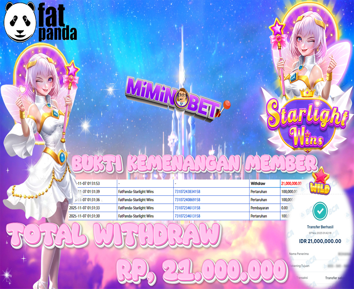 Selamat Kepada User ID : to*****00 yang berhasil mendapatkan Kemenangan besar di SLOTGAME ( FatPanda-Starlight Wins ) Dengan total kemenangan yang berhasil di peroleh yaitu : Rp 21,000,000,- Bukti transfer kemenangan yang kami posting merupakan bukti yang VALID dan SAH karena di dapatkan langsung dari bukti tanda transaksi dari bank yang di tuju / bersangkutan. Kemenangan telah di proseskan setelah melakukan pengisian ( form / formulir ) withdraw. Sebelumnya kami mengucapkan selamat dan berterima kasih kepada Pemenang, karena telah mempercayai situs MIMINBET sebagai BANDAR terpercaya yang sudah membayarkan semua kemenangan member tanpa sisa hingga lunas. Jadi tunggu apa lagi bosku?! Dimana lagi anda bisa jumpai bandar slot dan togel online terbaik dan amanah seperti MIMINBET ?! Bandar yang membayar kemenangan berapa pun tanpa basa basi dan langsung sat set kelar, sat set selesai ^^ Segera bergabung dengan kami MIMINBET, yang dimana ini adalah situs TERBESAR dan TERPERCAYA , Salam JP dan Salam MIMINBET ^^