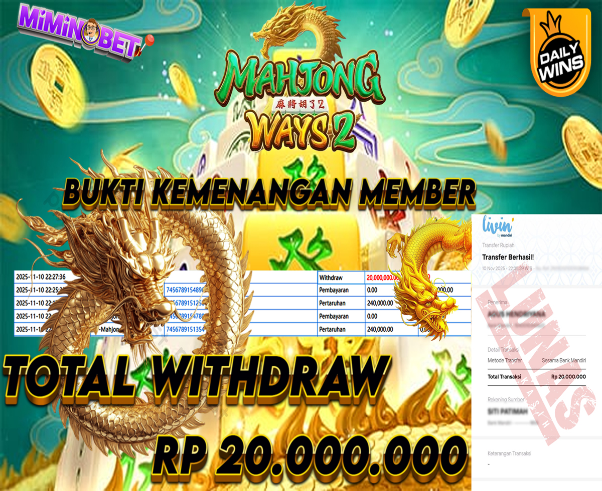 Selamat Kepada User ID : Ch****e yang berhasil mendapatkan Kemenangan besar di SLOTGAME (New-PG Mahjong Ways 2) Dengan total kemenangan yang berhasil di peroleh yaitu : Rp 20,000,000,- Bukti transfer kemenangan yang kami posting merupakan bukti yang VALID dan SAH karena di dapatkan langsung dari bukti tanda transaksi dari bank yang di tuju / bersangkutan. Kemenangan telah di proseskan setelah melakukan pengisian ( form / formulir ) withdraw. Sebelumnya kami mengucapkan selamat dan berterima kasih kepada Pemenang, karena telah mempercayai situs MIMINBET sebagai BANDAR terpercaya yang sudah membayarkan semua kemenangan member tanpa sisa hingga lunas. Jadi tunggu apa lagi bosku?! Dimana lagi anda bisa jumpai bandar slot dan togel online terbaik dan amanah seperti MIMINBET ?! Bandar yang membayar kemenangan berapa pun tanpa basa basi dan langsung sat set kelar, sat set selesai ^^ Segera bergabung dengan kami MIMINBET, yang dimana ini adalah situs TERBESAR dan TERPERCAYA , Salam JP dan Salam MIMINBET ^^
